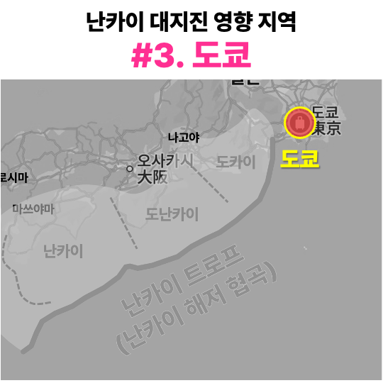 도쿄는 사실 난카이 트로프 해역 안에 들어가지는 않지만 사실 마음 편히 있을 수 있는 상황은 아닙니다.